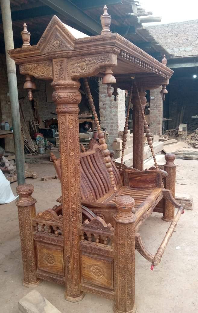 Design Variations: Offered in royal, classic, Spanish, Turkish, and fully customized jhoola designs, this masterpiece reflects the heritage of Chiniot’s hand-carved furniture with a touch of modern luxury.