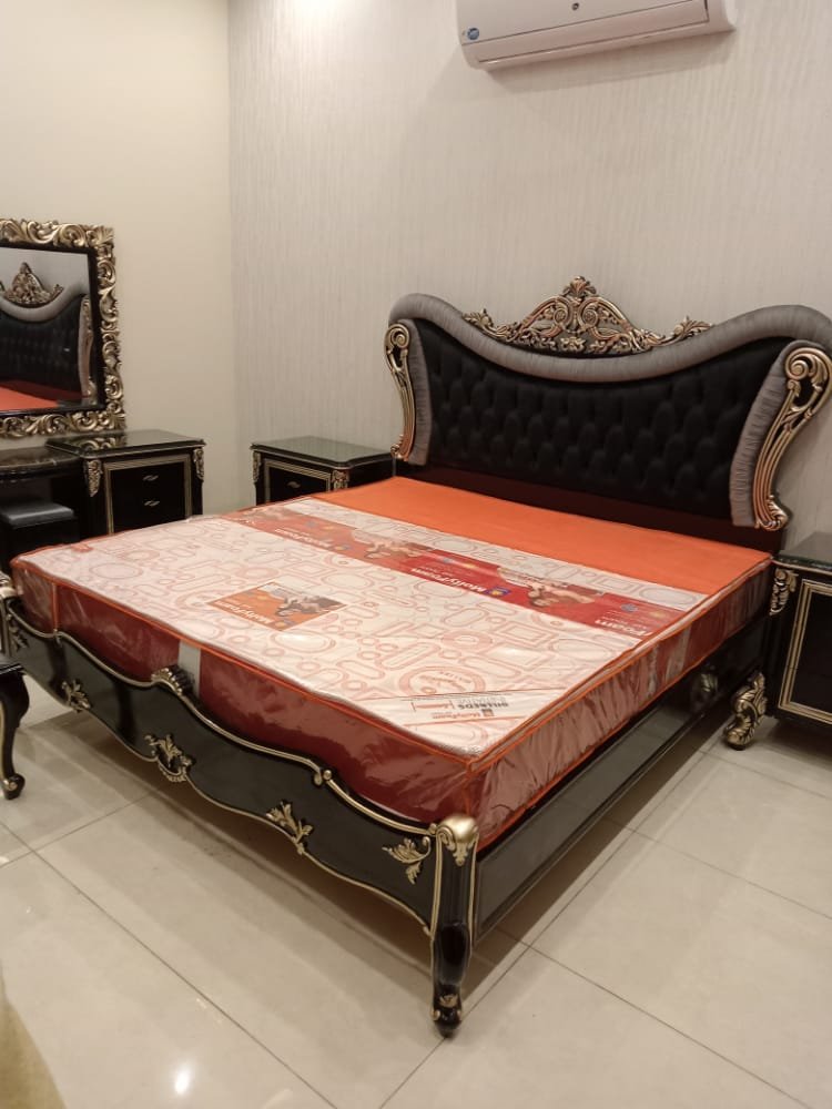 With years of expertise in wooden bedroom furniture in Pakistan, we are proud to present this quality-assured wooden double bed set. Whether you are searching for a bed set in Lahore, Karachi, or Islamabad, this design combines luxury, comfort, and long-lasting durability to make your bedroom truly elegant.
