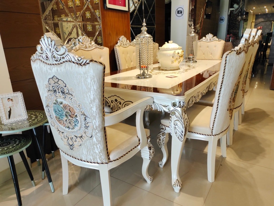 Material & Craftsmanship: The Italian Advance Design Dining Chairs and Table are crafted from premium solid wood with high-quality upholstery for lasting durability and comfort. Designed with precision, this elegant wooden dining table set showcases modern Italian design blended with timeless luxury.